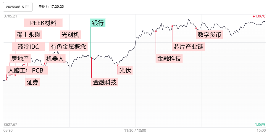 据报道,8月13日参与融资融券交易的投资者数量为52.34万名创年内新高,环比增长9.67%。融资融券市场活跃度提升显示市场风险偏好增强。此外数据显示,2025年7月全A日均成交额16336亿元,环比增长22.3%,同比增长149.1%。市场交投持续活跃背景下,大金融板块人气持续升温,长城证券早早晋级3连板,带动券商股发力的同时,指南针、同花顺两大金融科技龙头股午后触及涨停均创历史新高,热度有过之而无不及、尽管今年上半年大部分上市券商业绩预喜,但其背后因素更多仍以降本增效为主。港股金融科技概念股九方智投控股股价从去年9月25日最低点至今已经经历了10倍以上涨幅,可见金融科技方向仍是市场价升量增行情的业绩情绪高弹性所在。