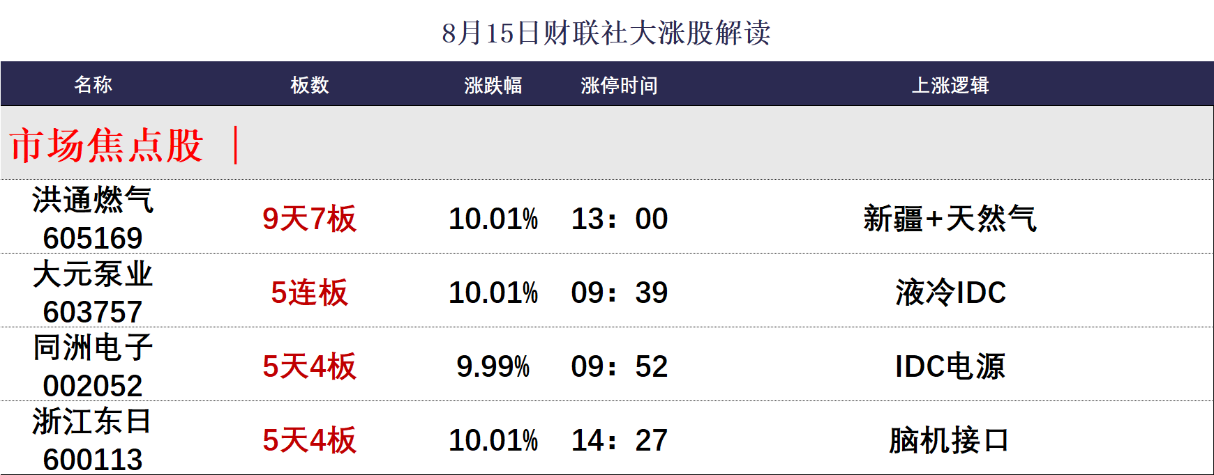 8月15日讯,今日86股涨停,14股炸板,封板率为75%,大元泵业5连板,长城证券、衢州发展、金田股份、宏和科技、飞龙股份、爱丽家居3连板,洪通燃气9天7板,同洲电子、浙江东日5天4板,北交所海能技术30cm首板。市场全天震荡反弹,创业板指领涨。沪深两市全天成交额2.24万亿,较上个交易日缩量346亿。盘面上,市场热点较为杂乱,个股涨多跌少,全市场超4600只个股上涨。板块方面,PEEK材料、液冷服务器、PCB、证券等板块涨幅居前,银行等少数板块下跌。截至收盘,沪指涨0.83%,深成指涨1.6%,创业板指涨2.61%。