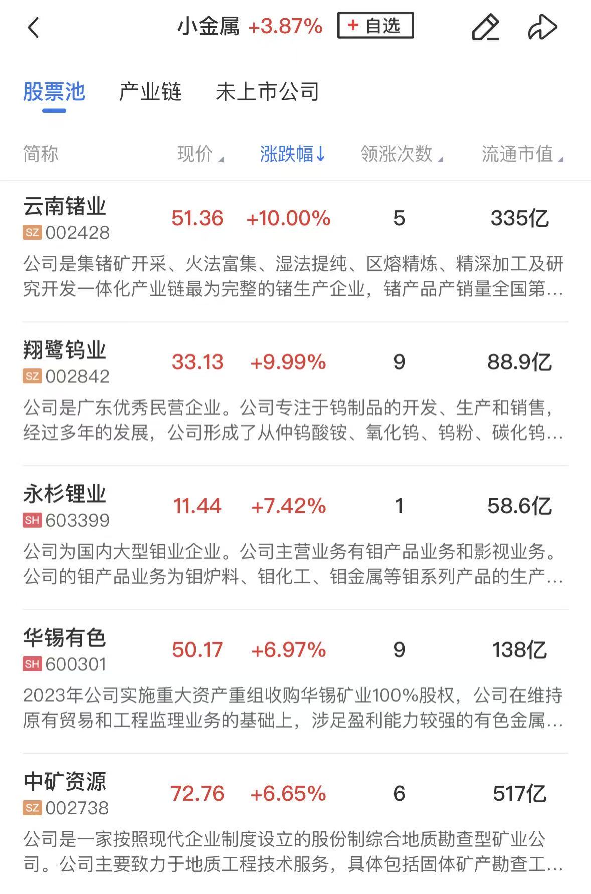 小金属同样展开反弹,云南锗业、翔鹭钨业涨停,章源钨业、华锡有色、锡业股份、中稀有色涨幅居前。