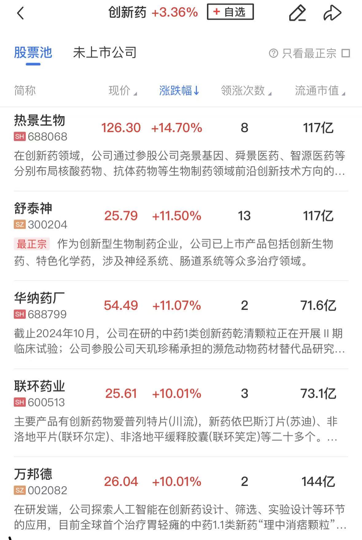 医药板块走强,科拓生物20cm涨停,美诺华6天5板,万邦德4天3板,联环药业、双鹭药业涨停。热景生物、益诺思、舒泰神、百利天恒等个股涨幅居前。
