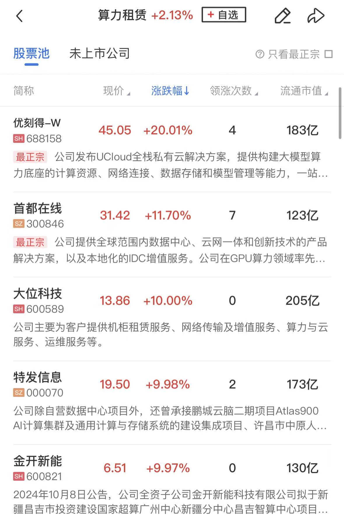 算力租赁持续活跃,大位科技4连板,优刻得20CM中涨停,依米康、首都在线、青云科技、协创数据、美利云等涨幅居前。