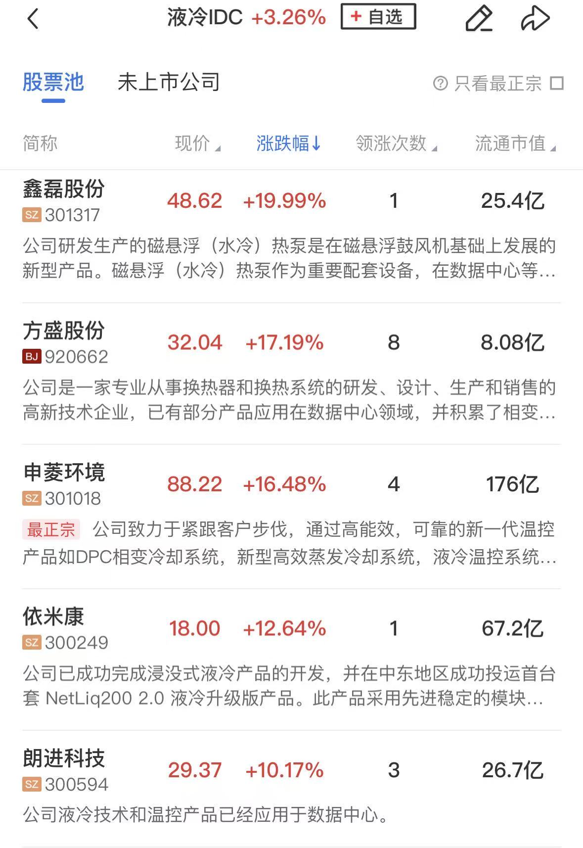 液冷概念股同样走强,川润股份、博杰股份、英维克、宁波精达、大元泵业等个股涨停。