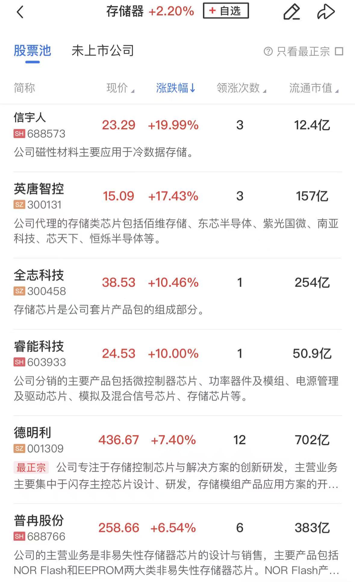 存储芯片反复活跃,睿能科技、盈方微涨停,德明利涨超7%再创新高,普冉股份、兆易创新、佰维存储等涨幅居前。