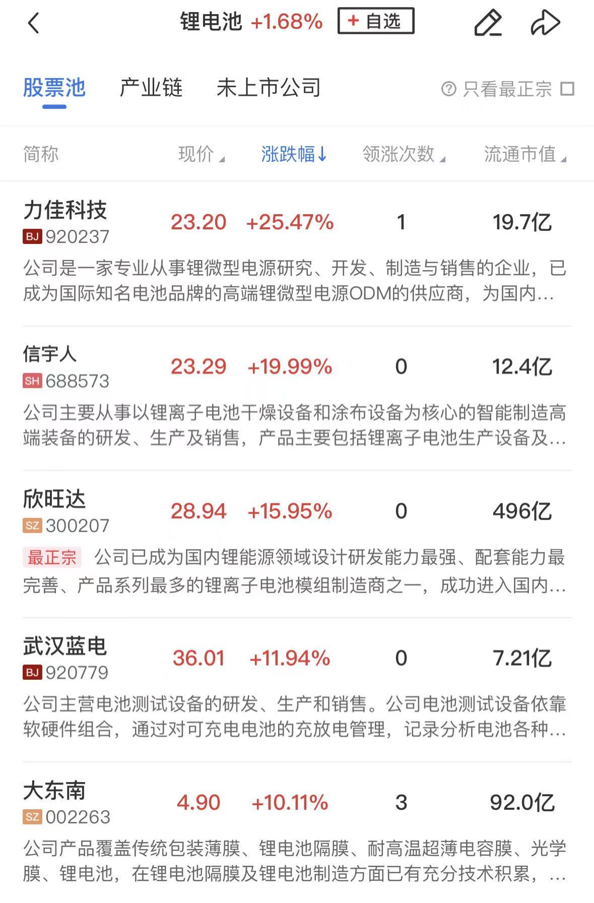锂电池涨幅居前,国轩高科、信宇人、圣阳股份涨停,欣旺达、南都电源、力王股份、天华新能、石大胜华等涨幅居前。