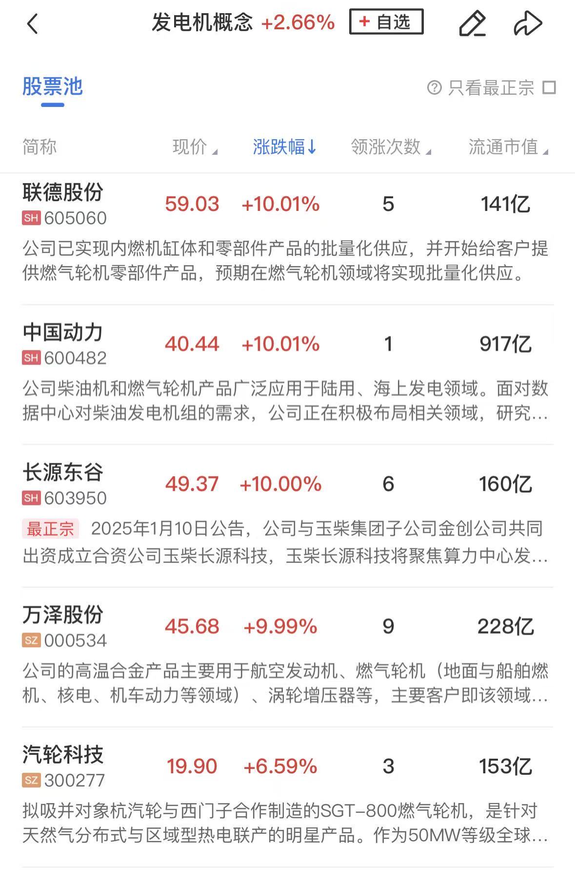 燃气轮机概念再度走强,万泽股份、联德股份涨停,杰瑞股份、应流股份、航宇科技、隆达股份、图南股份等跟涨。