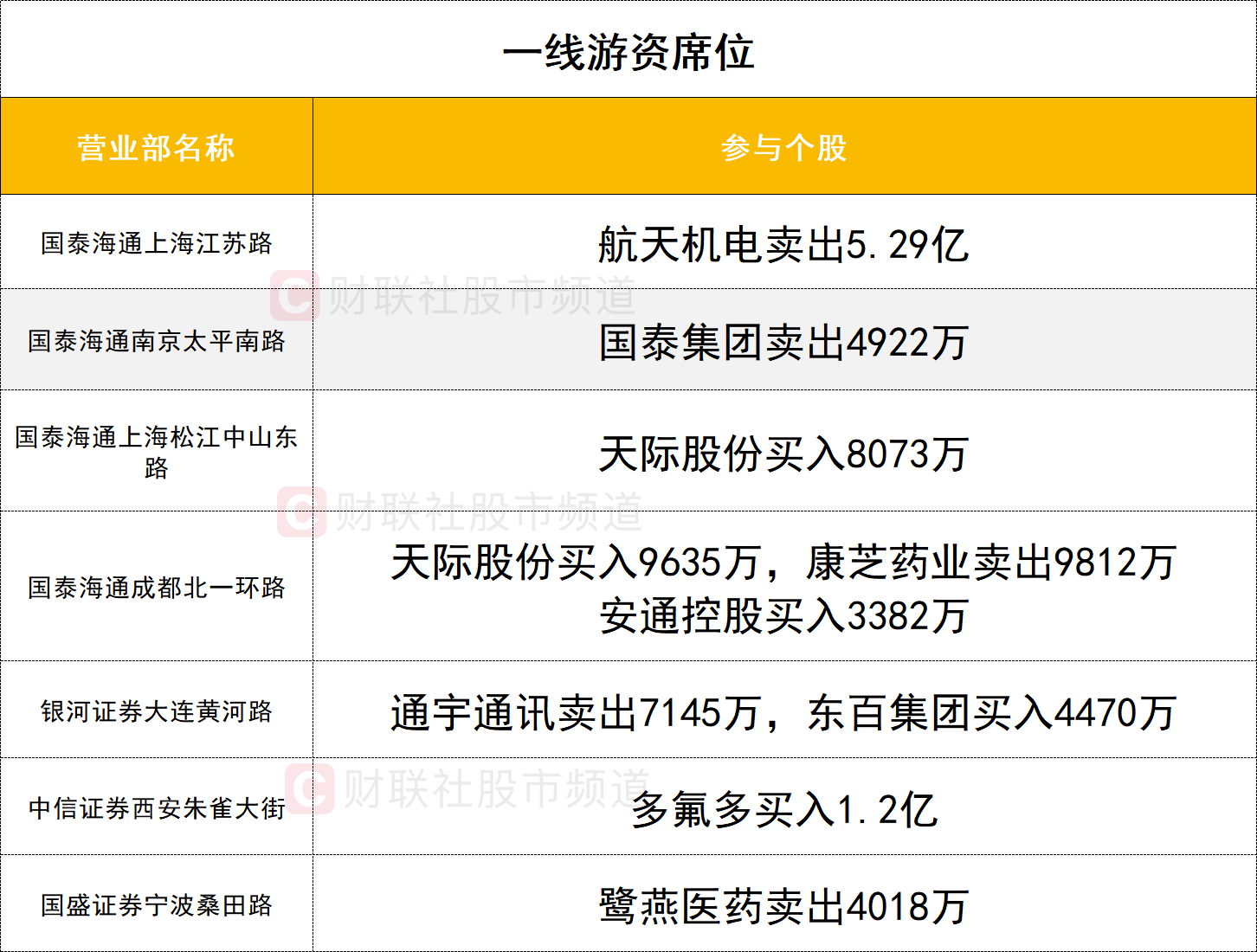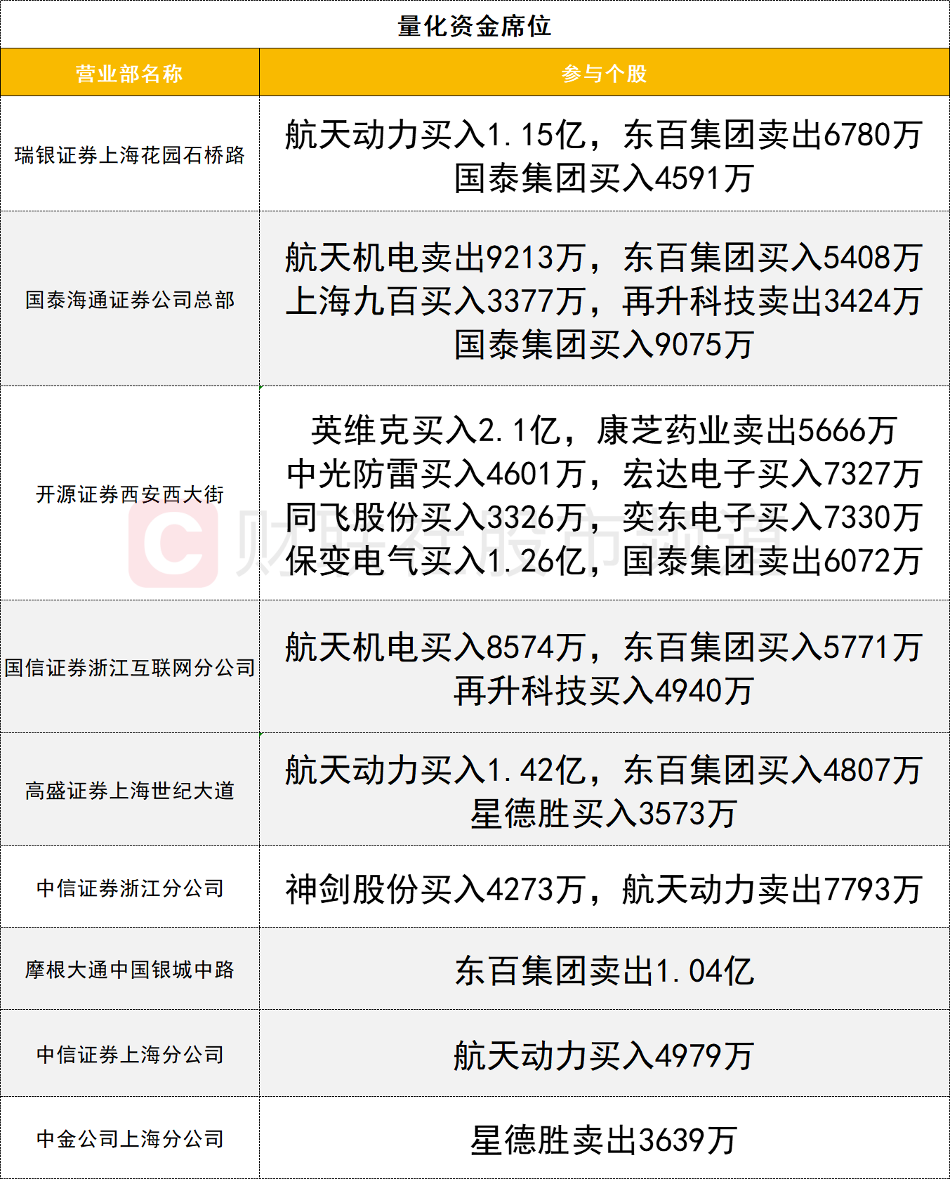 【数据看盘】实力游资扎堆锂电池股 江苏路席位5.29亿元卖出航天机电
