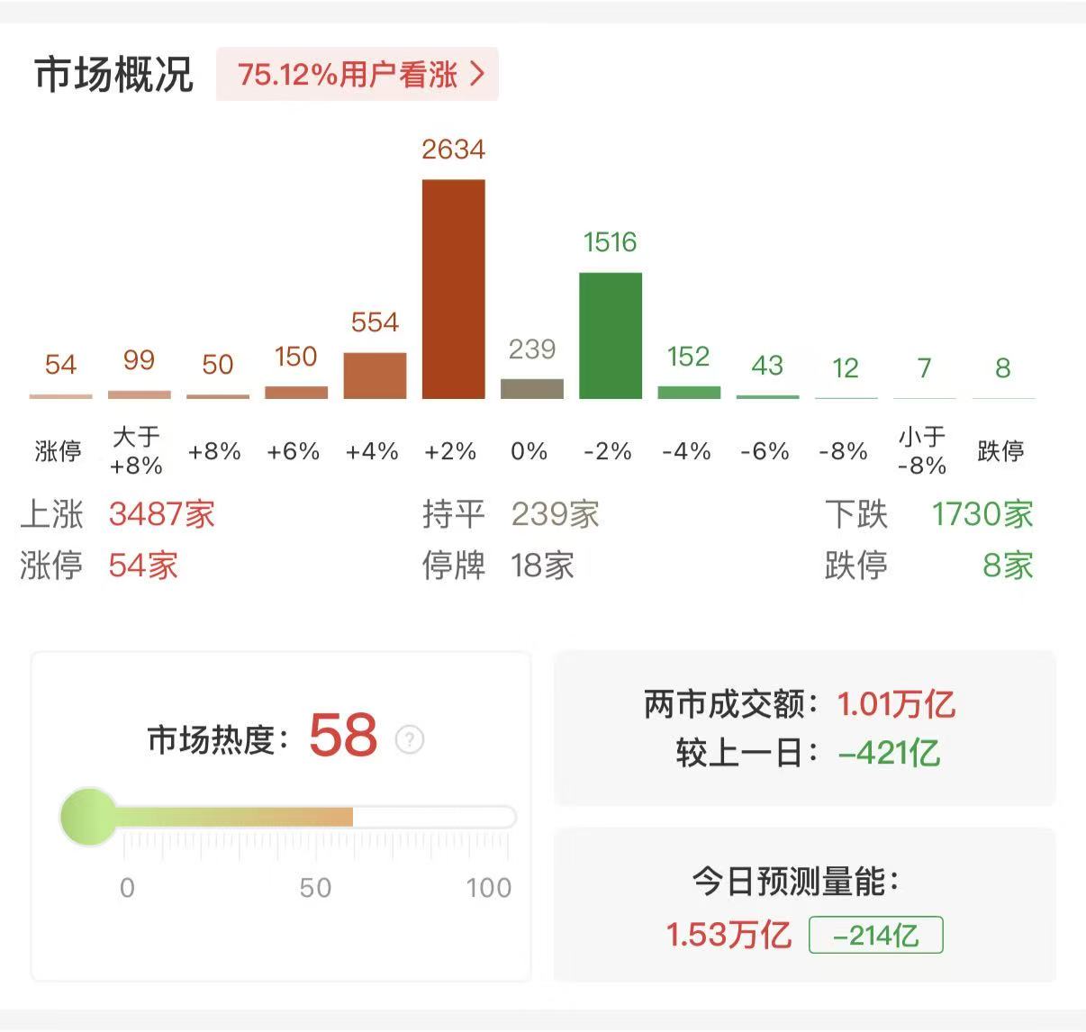 【14点快评:情绪快速回暖 封板率近80%】市场午后快速反弹,深成指、创业板指均涨超1%。成交量方面,第一个小时两市放量1197亿,预计两市全天成交1.66万亿。市场延续轮动,热点轮番活跃。大金融板块快速拉升,瑞达期货、中银证券涨停,赢时胜触及20cm涨停。人形机器人概念延续活跃,昊志机电触及20cm涨停。大消费板块走强,元祖股份直线涨停。短线方面,短线情绪明显回暖,全市场超4200只个股上涨。晋级率和封板率明显提升,封板率近80%,安记食品、太阳电缆双双晋级4连板。