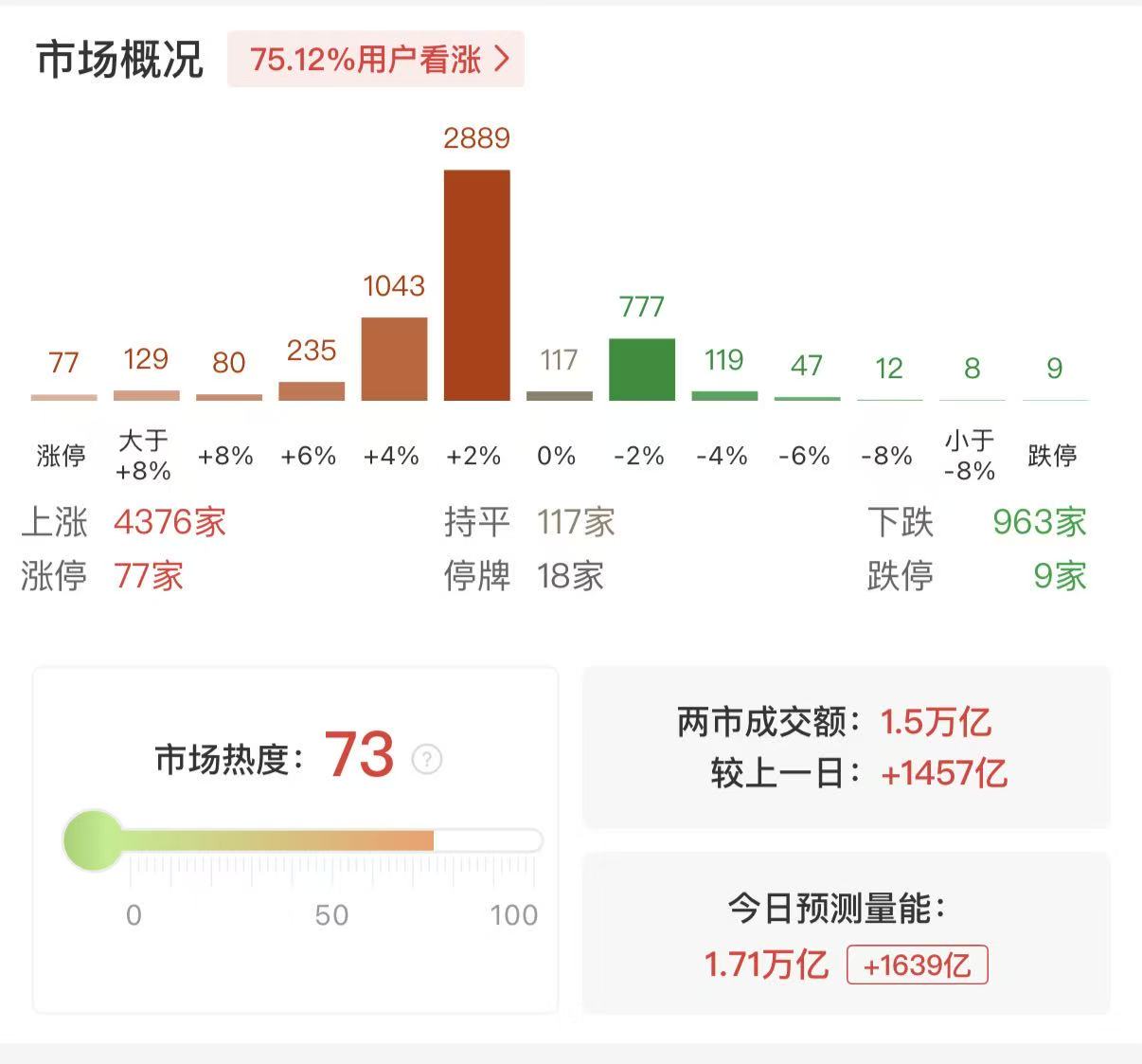 沪深两市成交额突破1.5万亿 较昨日此时放量超1400亿