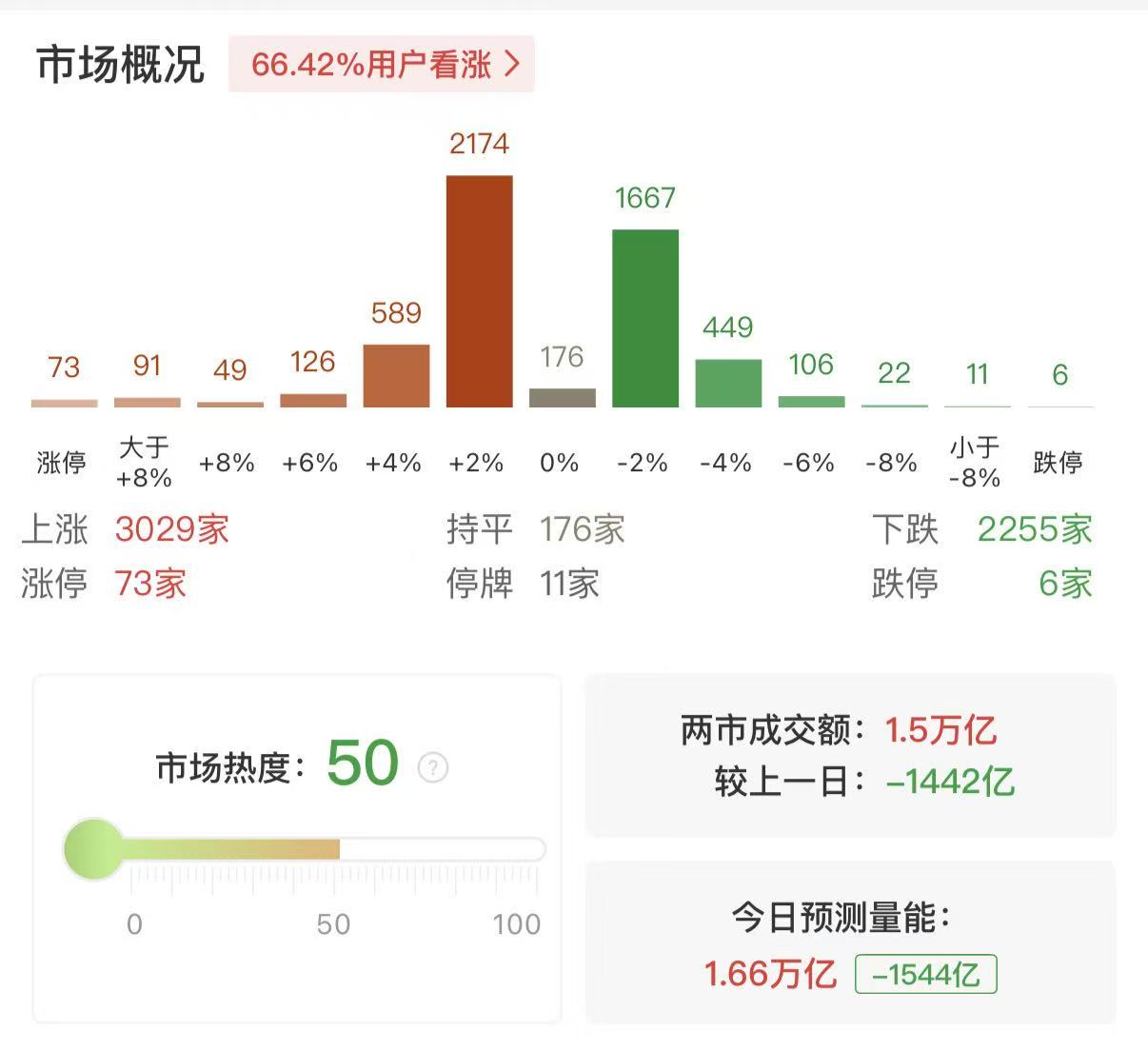 沪深两市成交额突破1.5万亿 较昨日此时缩量超1400亿