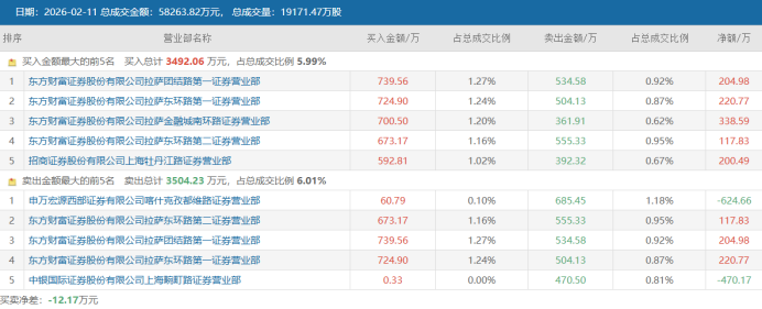 春节假期临近,A股行情进入蛇年尾声,市场整体交投活跃度持续下滑,截至今日收盘,沪深京三市成交额仅20010亿元,创2025年12月25日以来新低,其中,沪深两市成交额时隔31个交易日跌破2万亿元大关。不过,在多个热门题材的轮动下,不少个股仍获活跃资金重点关注,截至2月10日数据,周内2个交易日期间共有101股登上龙虎榜。