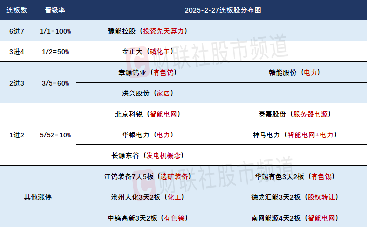 连板晋级率升至55.55%,市场短线情绪持续回暖,拟收购算力资产的电力人气股豫能控股以换手板实现6进7,进而带动所属的电力以及算力租赁概念热度持续升温,赣能股份在内的多只电力股午后封涨停。此外算力租赁产业链也不惧英伟达链为首的硬件端调整,全天走出独立行情。此外随着章源钨业缩量晋级3连板,小金属、化工为首的涨价概念股卷土重来,仍对算力产业链形成资金分流,使得华胜天成等多只算力人气股盘中遭遇炸板。因此对于一些涨速过快方向仍不宜盲目追高,关注一些主线方向的分歧低吸机会。