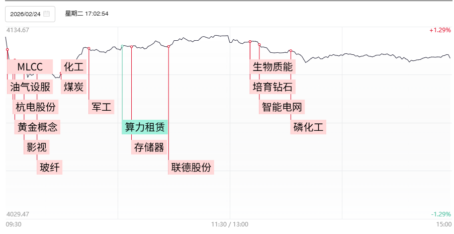 近日,摩根士丹利将美国2025—2028年数据中心的累计电力缺口从44吉瓦上调至47吉瓦,这相当于9个迈阿密或15个费城的总用电量。电力出海产业链延续节前强势,电网设备股保变电气、白云电器、大连电瓷涨停,明阳电气触及20cm涨停。此外柴油发电机、燃气轮机等方向热度同样居高不下,万泽股份、联德股份、杰瑞股份、应流股份等迭创历史或阶段新高。可见电力、电网出海当前仍是资金公认的算力出海的主要形式。而春节假期间关注热度高企的算力租赁概念为首的token出海反而在今日遭遇资金兑现走出高开低走行情。事实上从节前的CDN涨价到Seedance2.0的异军突起,整个算力租赁和云计算产业链已经过度反映了当前算力价格的上涨预期,今日遭遇资金兑利离场也在情理之中。