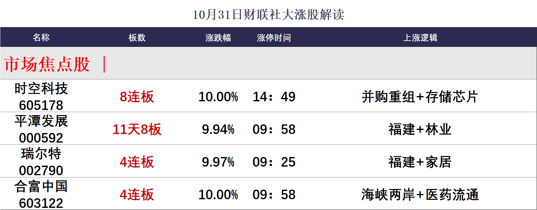 10月31日讯,今日57股涨停,37股炸板,封板率为61%,时空科技8连板,瑞尔特、合富中国4连板,大中矿业3连板,平潭发展11天8板,海峡创新20cm 5天3板。今日市场震荡调整,创业板指跌超2%。沪深两市成交额2.32万亿,较上一个交易日缩量1039亿。板块方面,医药、影视院线、AI应用等板块涨幅居前,保险、存储芯片、CPO等板块跌幅居前。