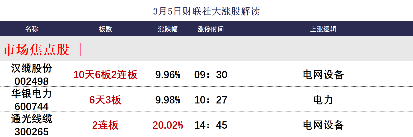 3月4日,亚马逊、谷歌、Meta、微软、xAI、甲骨文和OpenAI等科技巨头齐聚白宫,正式签署 “电费缴纳者保护承诺”,此前美国启动765kV超高压输电网建设,北美新一轮电力基础设施投资周期开启。电网设备板块再度爆发,通光线缆、顺钠股份、积成电子、汉缆股份实现连板晋级,带动趋势抱团方向也同步加强,中国西电、神马电力触及涨停刷新历史高点。板块内多只个股超预期实现1进2,仍有利于板块的趋势向上行情延续,关注板块内能否涌现出连板高度破局个股。而同样受益海外AI电力需求的燃气轮机方向,整机个股东方电气、上海电气双双封板,但此前的零部件、材料方向涨幅相对落后,反映当前整个燃气轮机阶段涨幅过大后资金进一步出现缩圈动作,未来主流资金的聚焦重点或继续向订单以及实质性业绩落地。