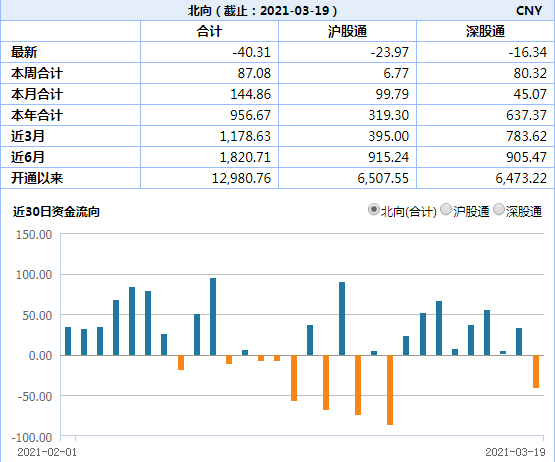 北向资金,今日净卖出40.31亿元。其中,沪市净卖出23.97亿元,深市净卖出16.34亿元。