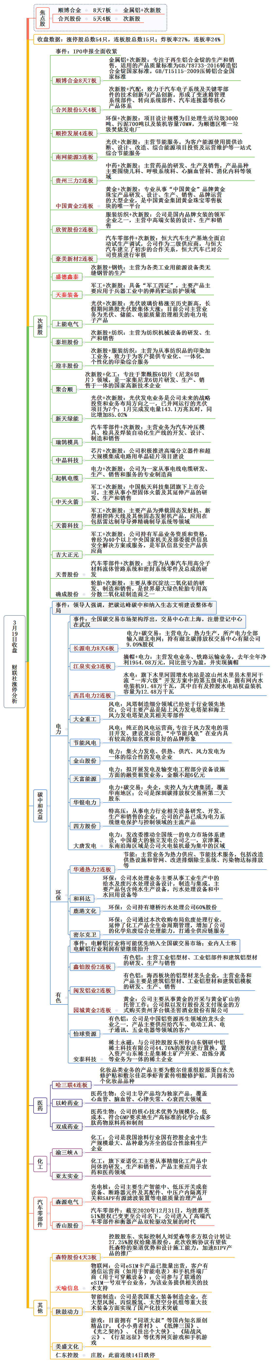 碳中和方面,电力昨日率先反攻,今日继续领涨。长源电力、南网能源、华银电力都是标杆股,竞价受市场情绪影响给出了极好的博弈位置。后排电力相关涨停标的近10只,包括了西昌电力、大金重工、节能风电、金山股份、天富能源、四方股份、大唐发电等。