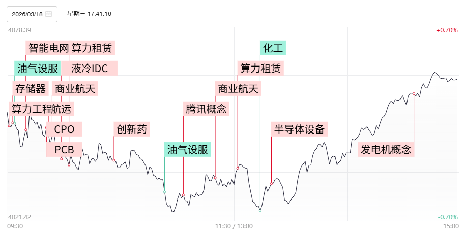 腾讯正式宣布,“龙虾”产品QClaw宣布版本更新,将微信入口升级为小程序,随着字节、腾讯、阿里等互联网科技大厂陆续推出OpenClaw产品,带动Token调用量暴涨,阿里云宣布上调AI算力、存储等产品最高涨价34%,算力租赁概念全天强势,平治信息、美利云、云赛智联、数据港等多股涨停,东方国信、光环新网、优刻得等多股涨超10%。此前今年海外主要云厂商也陆续上调了核心云产品价格,而随着海外多地数据中心能源供应遭到威胁,电力资源不受制约的国内数据中心的稀缺属性凸显。不过今日韶能股份、粤电力A双双封死一字涨停,对算电协同概念的刺激相对有限,除去金开新能等人气股相对强势外,中国能建、中国电建等大成交容量票整体表现较为平淡,绿电板块与指数的负相关仍对算电协同方向形成一定拖累。