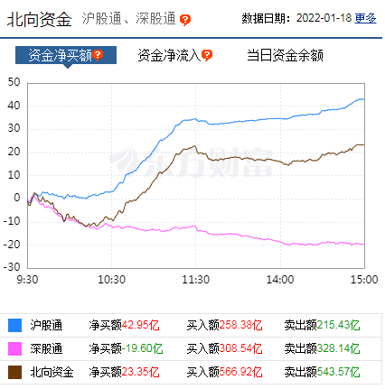 北向资金,今日合计净买入23.35亿元。其中,沪市净买入42.95亿元,深市净卖出19.6亿元。
