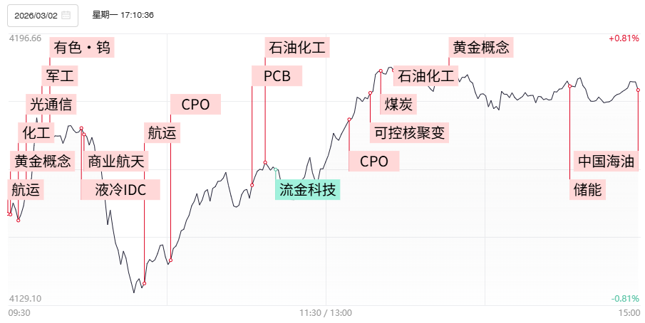 【焦点复盘】沪指放量涨0.47%迎3月开门红,全市场超120股涨超10%,中东局势再度引爆资源股