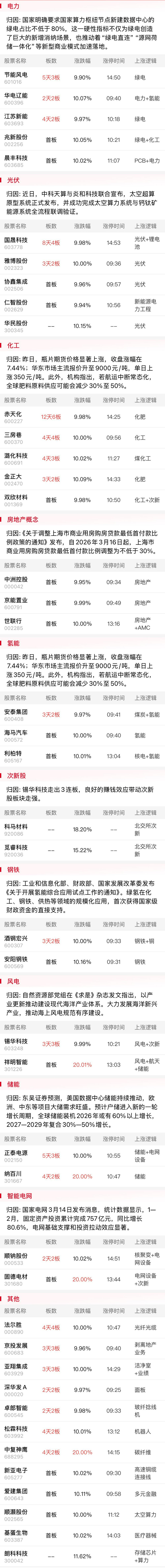 工信部等三部门发布《关于开展氢能综合应用试点工作的通知》,就近利用工业副产氢、可再生能源制氢等清洁低碳氢源,建设低碳冶金装置。受益可再生能源制氢新政,以及此前政府工作报告首次将“算电协同”写入报告内容,绿电概念卷土重来,华电辽能弱转强晋级2连板,节能风电、江苏新能、雅博股份实现反包涨停,绿色动力、浙江新能、华电新能触及涨停。此外受益低碳冶金扶持政策,钢铁板块逆势活跃,安阳钢铁、酒钢宏兴双双反包涨停,中南股份、凌钢股份早盘一度触及涨停。作为当前人气仅次于化工的绿电板块,其同时与储能、算力、氢能等领域的交集,仍容易成为几大方向聚集的一大载体,且板块内抱团人气股仍层出不穷,仍是短线抱团资金绕不开的核心方向之一。而钢铁板块近期的补涨动作,或预示着市场当前的聚焦重点仍集中于低价、超跌两大属性,能否进一步带动整个低价股群体的活跃也值得期待。