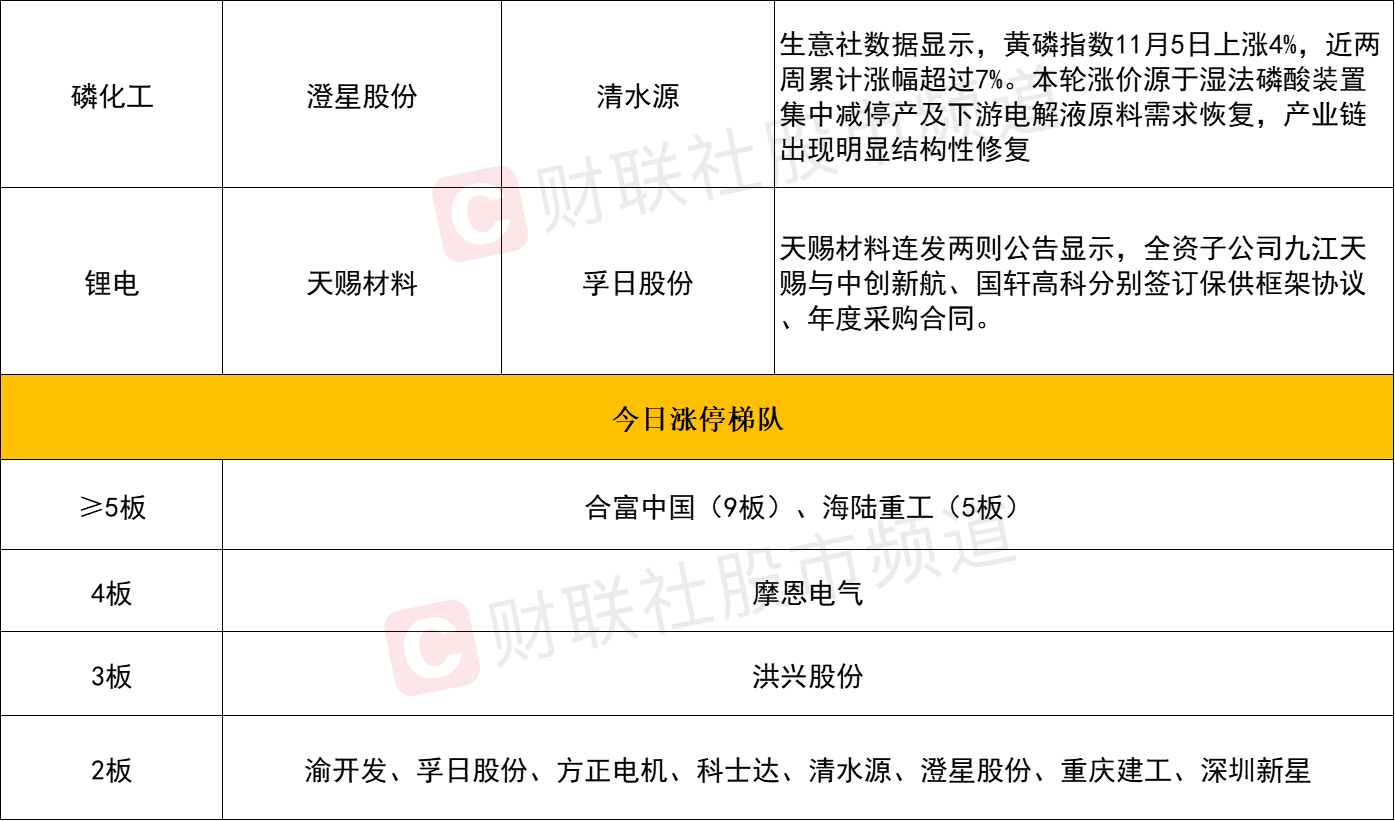 化工板块全线爆发,磷化工延续涨势,清水源、澄星股份、安纳达、金浦钛业涨停,中伟股份、云天化、兴发集团涨幅居前。