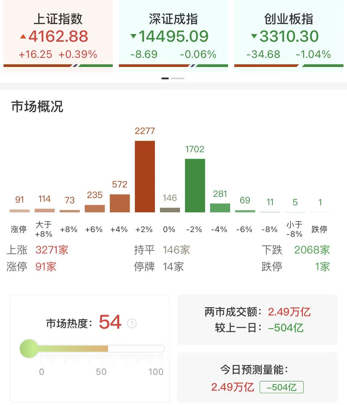 2月27日讯,市场全天震荡分化,沪指午后成功翻红,创业板指跌超1%。沪深两市成交额2.49万亿,较上个交易日缩量504亿。盘面上热点快速轮动,全市场超3200只个股上涨。从板块来看,有色金属板块反复活跃,章源钨业7天5板,翔鹭钨业、中稀有色涨停。电力股震荡走强,赣能股份3连板,珈伟新能20CM涨停。算力租赁概念同样于盘中活跃,云天励飞、拓维信息、利通电子等封涨停。下跌方面,算力硬件方向陷入调整,中际旭创、新易盛双双跌超6%。截至收盘,沪指涨0.39%,深成指跌0.06%,创业板指跌1.04%。