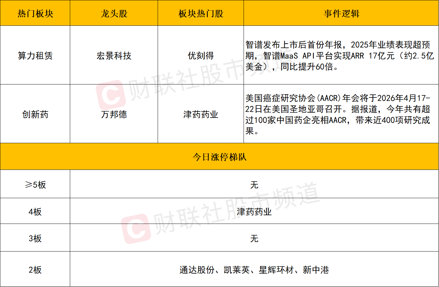 创新药近期走出了较佳的延续性,一方面与我国创新药BD交易持续火爆有关。据统计,截至3月底,2026年以来我国创新药BD交易总额已突破600亿美元。另一方面,则受到业绩驱动,根据药明康德、复星医药、三生国健等权重所披露年报业绩均显著增长。此外,万邦德、津药药业等高标持续正反馈也吸引活跃资金的加速涌入。不过在连续放量拉升后,短线情绪或趋于高潮,一旦后续没有足够资金承接,预计板块内部分化加剧,注意短线节奏。