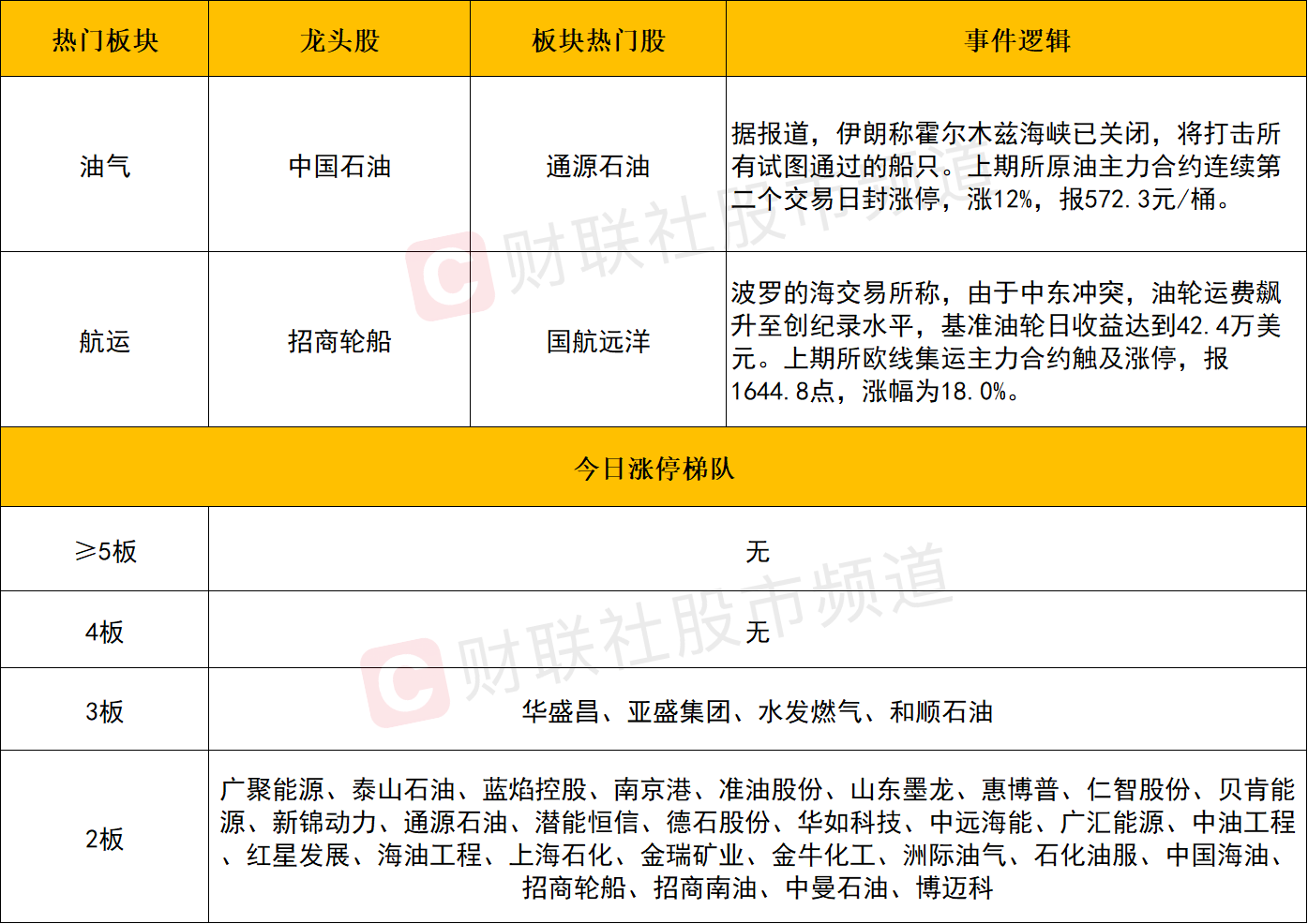 板块上,油气板块再度爆发,中国石化、中国石油、中国海油再度全线涨停,科力股份、通源石油、潜能恒信、中油工程、惠博普、中海油服等涨停。