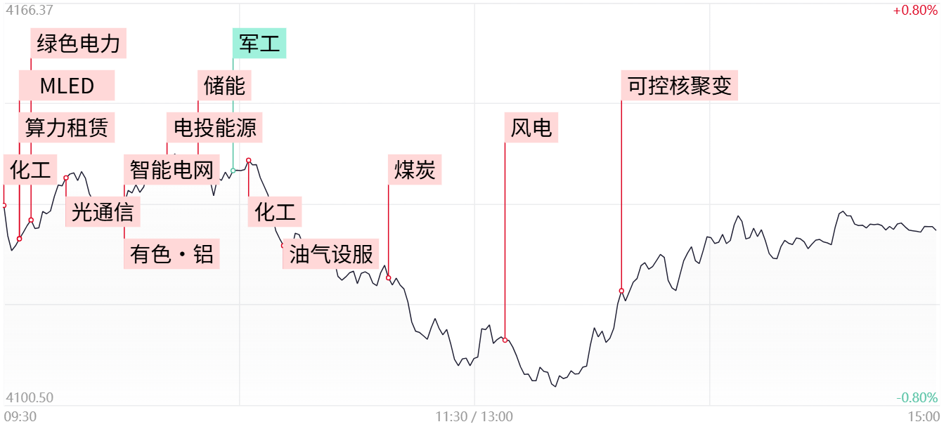 【每日收评】沪指探底回升小幅收跌,全市场超3800股飘绿,绿电板块持续爆发