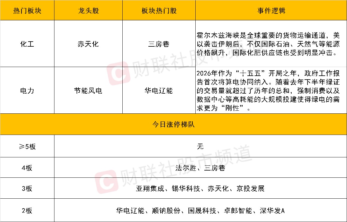 化工股继续在分歧中前行,三房巷4连板,赤天化打开高度,潞化科技、金正大、双欣材料等涨停助攻,还有金牛化工、金瑞矿业等高位人气股趋势向上。该方向还是以地缘冲突为底,霍尔木兹海峡是全球重要的货物运输通道,国际石油、天然气等能源价格飙升,进而传导至其它相关的化工品类。