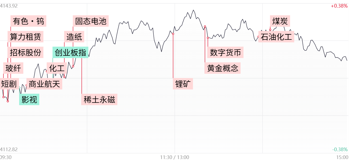 玻纤概念同样表现亮眼,国际复材、宏和科技、山东玻纤、中国巨石涨停,九鼎新材、振石股份等个股涨幅居前。