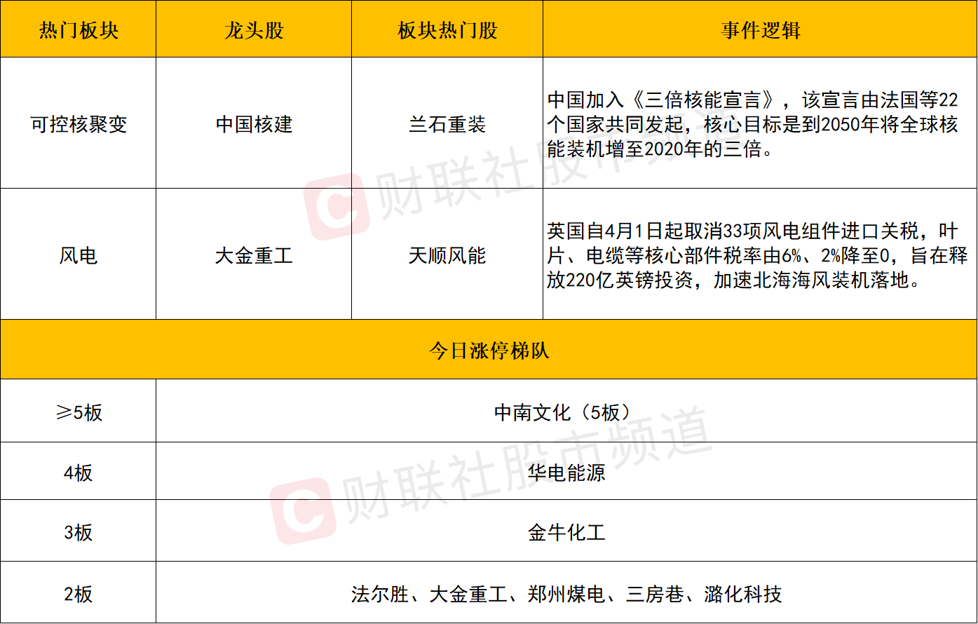 可控核聚变概念午后加强,中国核建,兰石重装、江苏神通涨停,中核科技、常辅股份、合锻智能、融发核电跟涨。消息面上,据报道,中国加入《三倍核能宣言》,该宣言由法国等22个国家共同发起,核心目标是到2050年将全球核能装机增至2020年的三倍。