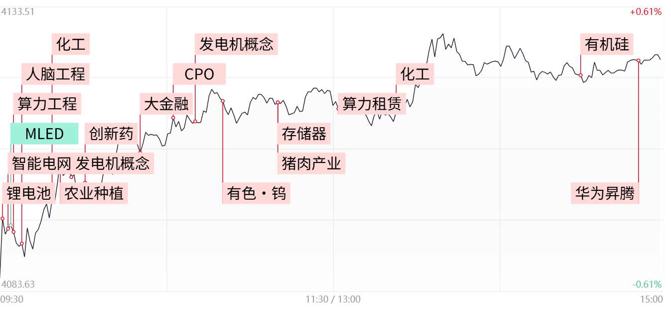 今日市场延续震荡反弹,三大指数最终小幅收红,市场连续两日超4000股收红。但需注意的是,今日量能再度萎缩至2.2万亿左右,显然目前的量能水平无法支撑连续普涨行情,若下周量能仍无法有效放大,市场或将再度面临分化局面。从盘面的角度来看,虽然市场板块呈现百花齐放态势,但除了电网设备以外,其余热点依旧维持快速轮动局势,可见在缺乏足够增量资金的环境下,追高意愿仍相对较弱。故应对上仍需把握节奏,相较于跟随追涨,在板块分歧回调过程中寻找低吸埋伏或具更高胜率。