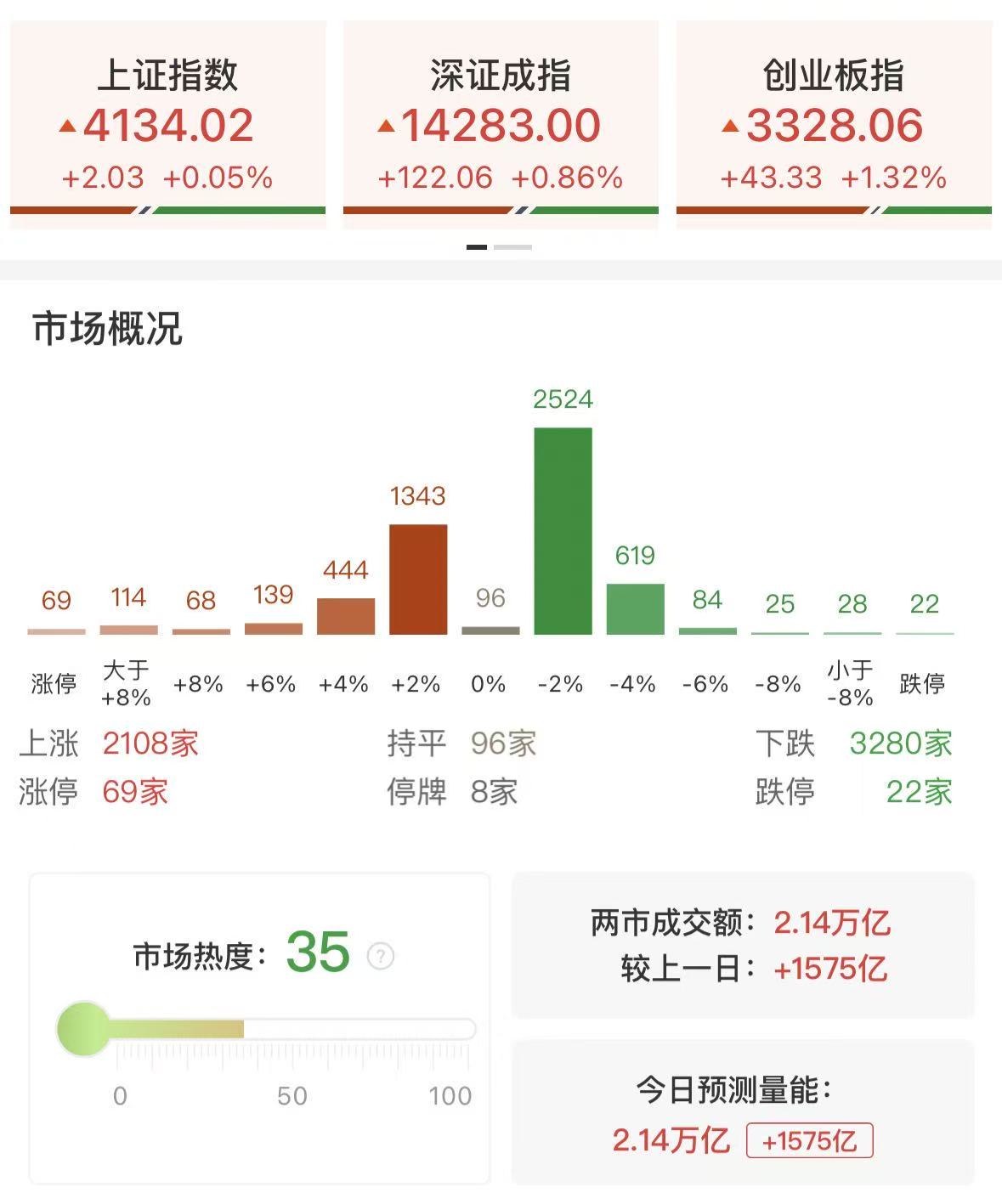 2月12日讯,三大指数集体收涨,创业板指、科创50指数均涨超1%。大小指数分化,微盘股指数跌超1%。沪深两市成交额2.14万亿,较上一个交易日放量1575亿。全市场超3200只个股下跌。从板块来看,算力产业链集体爆发,算力租赁概念走强,大位科技4连板,首都在线、优刻得20cm涨停。CPO概念快速拉升,天孚通信、罗博特科均续创历史新高。算力芯片概念午后走高,芯原股份大涨超10%。液冷服务器概念表现活跃,川润股份4天2板,大元泵业涨停。电网设备概念集体走强,思源电气、四方股份均创新高,望变电气、顺钠股份涨停。下跌方面,大消费板块集体走弱,影视院线、旅游酒店、零售、食品饮料等板块跌幅居前,横店影视、海欣食品跌停。截至收盘,沪指涨0.05%,深成指涨0.86%,创业板指涨1.32%。