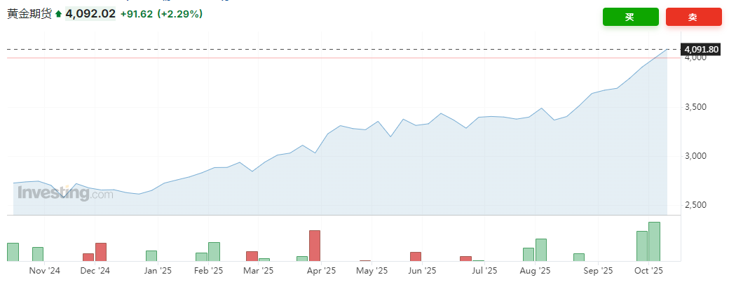 10月13日讯(编辑 刘蕊)随着现货黄金价格突破4000美元大关,德意志银行分析师表示,目前技术指标显示,近期黄金涨势可能已见顶。不过,这并不意味着金价将会大幅下跌,而可能只是会在一段时期内停滞不前。