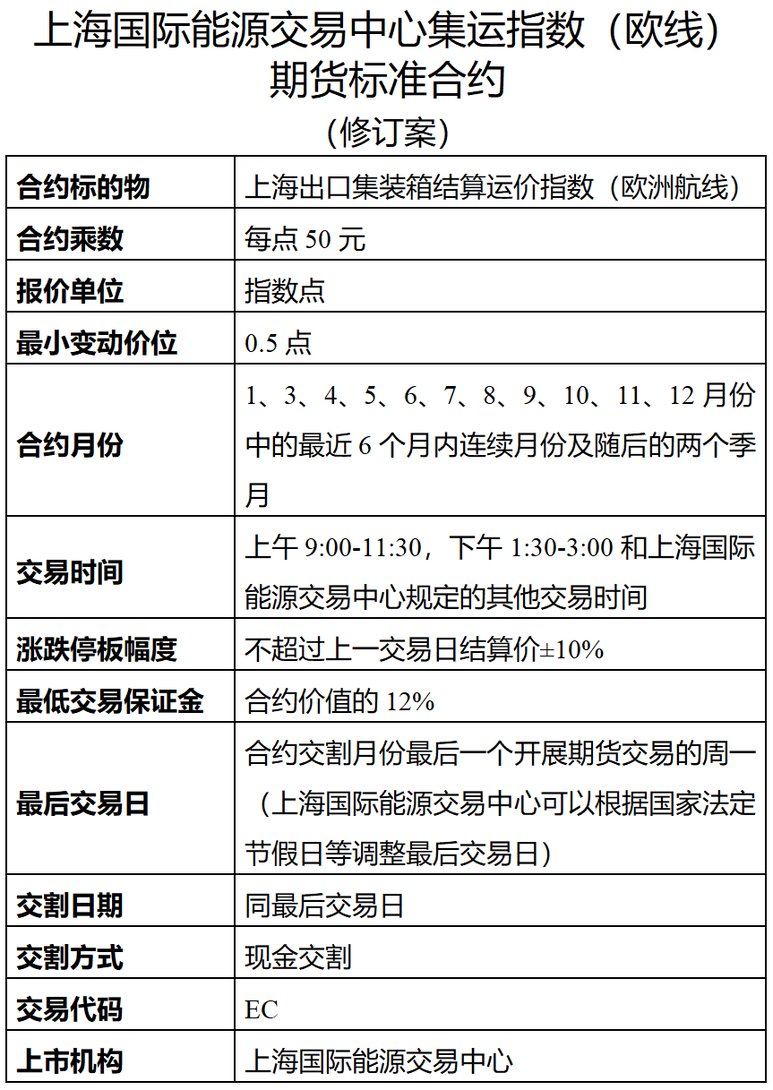 《上海国际能源交易中心集运指数(欧线)期货标准合约》(修订案)发布