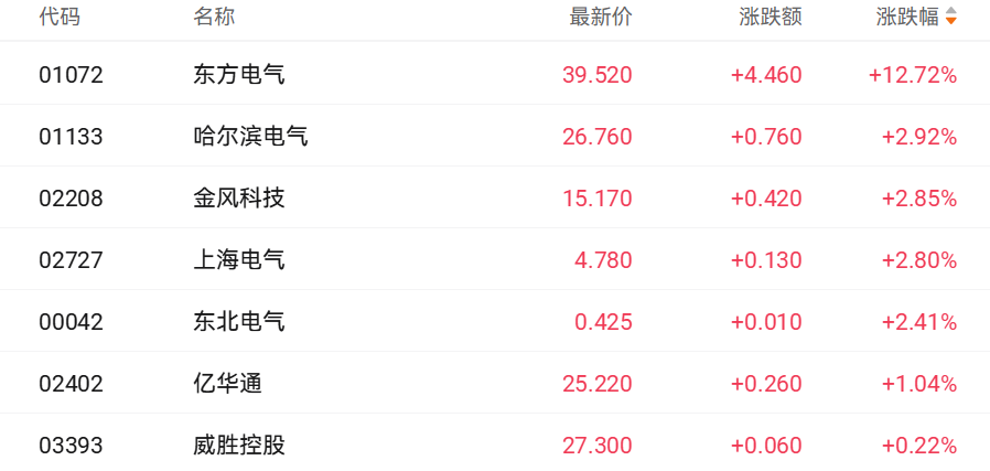 东方电气涨幅居前