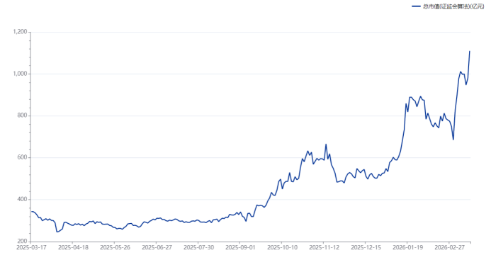 从市值变动角度统计,以收盘时总市值数据计算,佰维存储曾于3月9日历史首次登上千亿元关口,不过,其市值规模随后数日有所回落,但均保持在900亿元上方,直至今日再度刷新历史新高,总市值一举突破至1110亿元附近,再次重返“千亿市值俱乐部”。从整个电子板块来看,佰维存储目前总市值排在第23位,超过板块内95.4%公司。