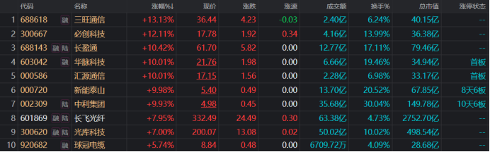 股价入围A股前20!光纤龙头连日创新高,年内高涨热股扫描,这些特点或可关注
