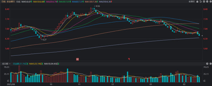 从资金面来看,工商银行近期获融资客部分回流加仓,而农业银行则历经先升后降。具体数据方面,截至2月12日,工商银行、农业银行目前融资余额规模分别达23.88亿元、12.32亿元,较去年年末时各有4.52亿元、2.31亿元的增长。其中,工商银行目前融资余额创2025年11月11日以来新高,而农业银行融资余额较2月高点累计回落近1.6亿元。