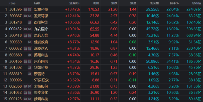 3月19日讯(编辑 梓隆),今日(3月19日),AI应用板块局部活跃,截至收盘,宏景科技、圣元环保、杰创智能、九安医疗、昆仑万维等股涨幅居前。其中,九安医疗唯一录得涨停,同时晋级2连板,收盘股价涨至65.95元,创2022年6月以来近4年新高。