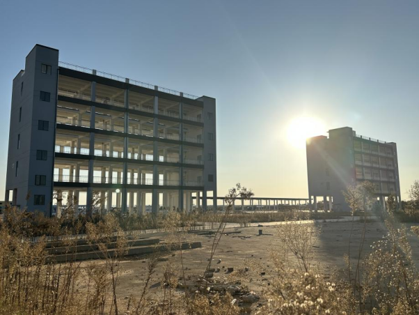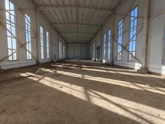 按照园区工作人员的说法,兮璞材料分别在园区内认租了两栋厂房C-125和C-126。不过记者在现场看到,这两栋厂房的室内地面尚未完成硬化,黄褐色沙土地面上零星散落着施工残留的小块杂物,尚未配置任何生产设施。