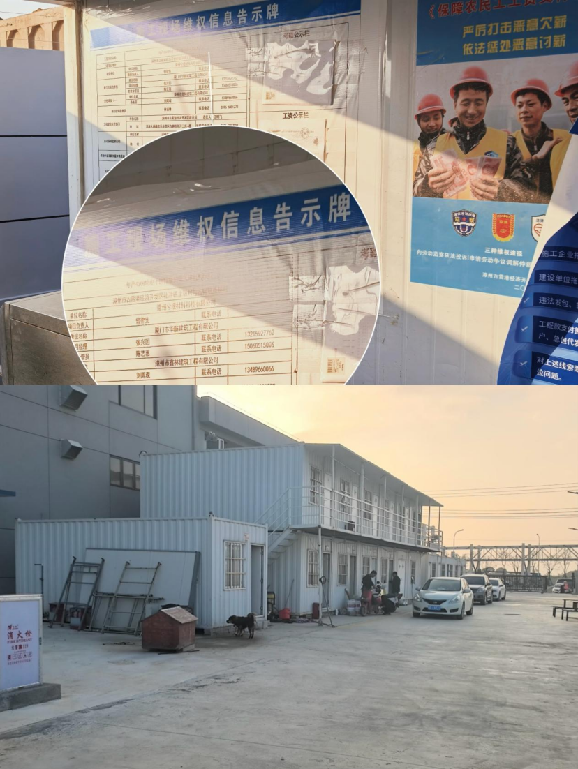 在福建省漳州市杜浔镇北坂村前田自然村,记者找到了一块标注有“漳州兮璞材料科技有限公司”的施工现场维权信息告示牌,工地周边,挖掘机在正门外围施工,现场工人很少。
