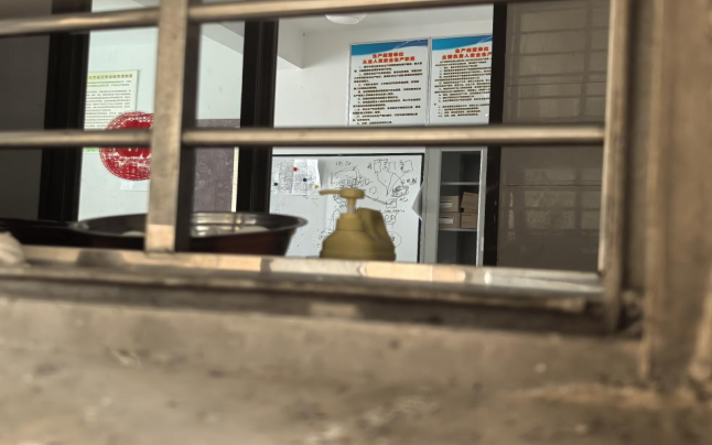 在这栋居民楼里,透过办公地点的小窗户,隐约可见生产单位相关标语牌、危险化学品经营运输管理制度等字样以及白板上的建筑平面图。