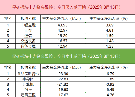 从主力板块资金监控数据来看,非银金融板块主力资金净流入居首。
