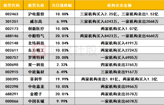 卖出方面,PEEK材料概念股中欣氟材遭机构卖出超9000万;菲利华遭机构卖出1.81亿,同时获机构买入1.3亿。