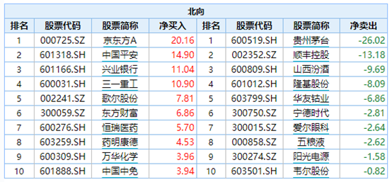 从上周北向资金的动作来看,有业绩支撑的电子行业龙头及行业景气度较高的医药股备受青睐,其中净买入京东方A超20亿元,而消费类个股则呈现出明显的净卖出态势。