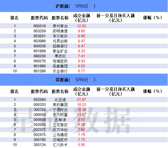 从沪股通前十大成交个股来看,贵州茅台位居首位;药明康德和韦尔股份分居二、三位。