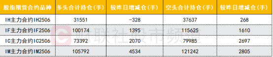 四大期指主力合约中,IH合约多头小幅减仓,空头小幅加仓;IF、IC、IM合约多空双方均加仓,IF、IC合约空头加仓数量较多,IM合约多头加仓数量明显大于空头。