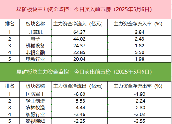 从主力板块资金监控数据来看,计算机板块主力资金净流入居首。